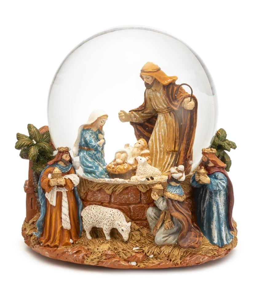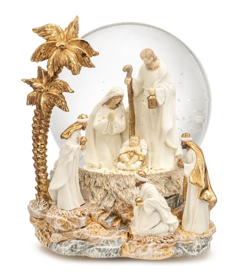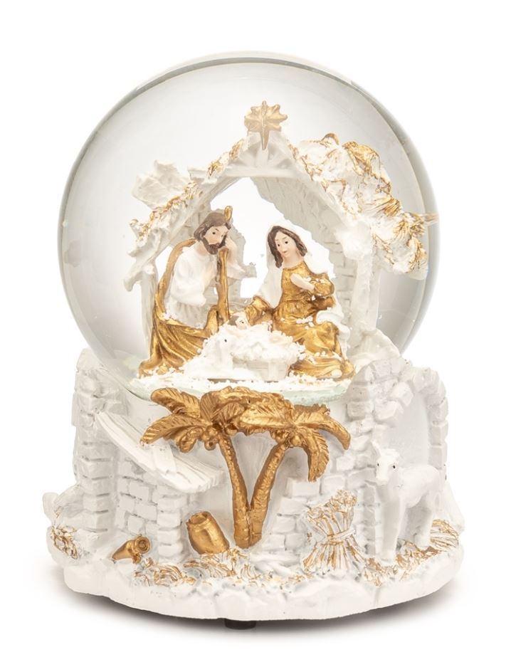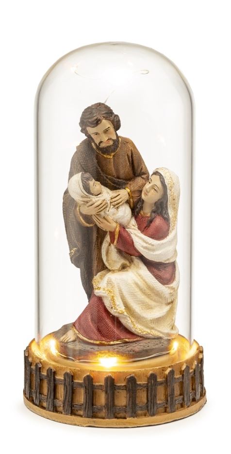 PALLA VETRO ACQUA/NEVE BASE IN PORCELLANA MISURE : DIAM. CM. 4.5 X 7 SOGGETTO SACRA FAMIGLIA SCATOLA REGALO