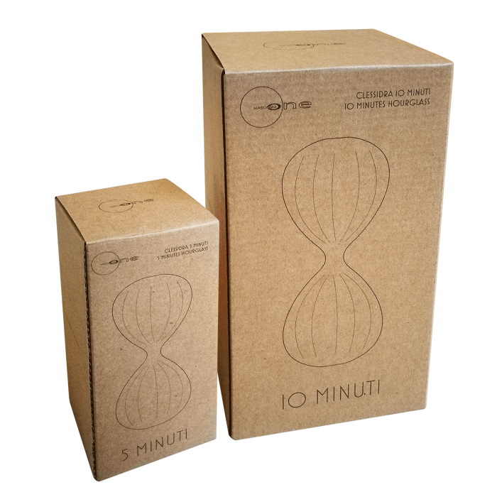 Clessidra magnetica con base in legno di faggio. Capovolgendo la clessidra, la sabbia magnetica, attirata dal magnete alla base, crea splendide forme, ogni volta diverse.
