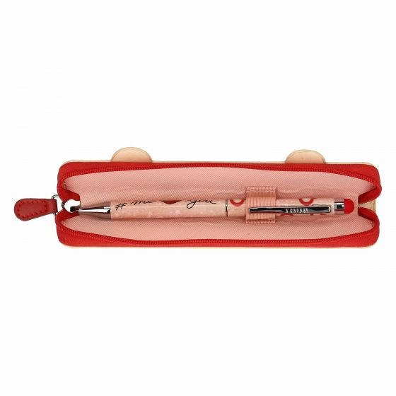Una nuova penna con apertura a giro e gommino sul tappo per usarla con tablet e cellulari, abbinata all'astuccio in ecopelle dotato di apposito spazio dove riporre la penna. Perfetta da tenere sempre in borsa per annotare appunti ovunque tu sia. Impossibile poi resistere alla tenerezza delle dolci orecchie del Teddy che compaiono dall'astuccio. Una vera e propria idea regalo irresistibile. Codice Prodotto: H2839P00 Materiale: poliestere con rivestimento in poliuretano; penna in acciaio inossidabile e ottone Misure: astuccio 16,5x2 cm laghezza; penna 14,5 cm Cura del prodotto: non esporre alla luce e al calore, mantenere asciutto, pulire con un panno morbido e asciutto, evitare il contatto con superfici ruvide