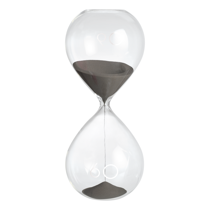 CLESSIDRA 60 MINUTI IN VETRO SIXTY Clessidra misura tempo da sessanta minuti. Diam. 11x30h cm. colore grigio
