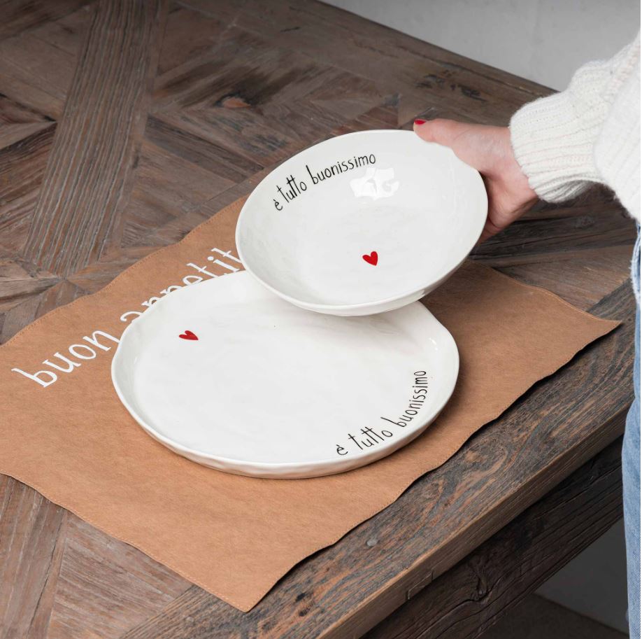 Set 2 Piatti fondi decoro E' tutto buonissimo diam. 20 cm Il set di 2 piatti fondi è uno splendido completamento per la tua tavola. Raffinati, eleganti e con un design moderno, questi piatti sono perfetti per aggiungere un tocco di classe a qualsiasi pasto. I piatti fondi sono resistenti e facili da pulire, rendendoli perfetti per servire piatti saporiti e gustosi Diametro 20 cm Decoro E' tutto buonissimo in colore nero Articolo realizzato in gres questo materiale è di altissima qualità e garantisce una lunghissima durata nel tempo del prodotto che rimane sempre bello come nuovo anche se usato quotidianamente Puoi lavare senza nessun problema questo articolo in lavastoviglie Adatto all'utilizzo in forno microonde Finitura effetto organico Disegnato in Italia