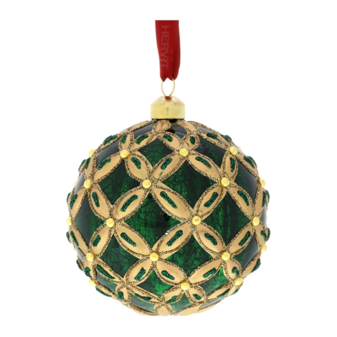 SFERA VETRO SOFF.DEC.ROMBO ROSSA - Ø12cm DIPINTA A MANO C/NASTRO ROSSO HERVIT SCAT.REGALO