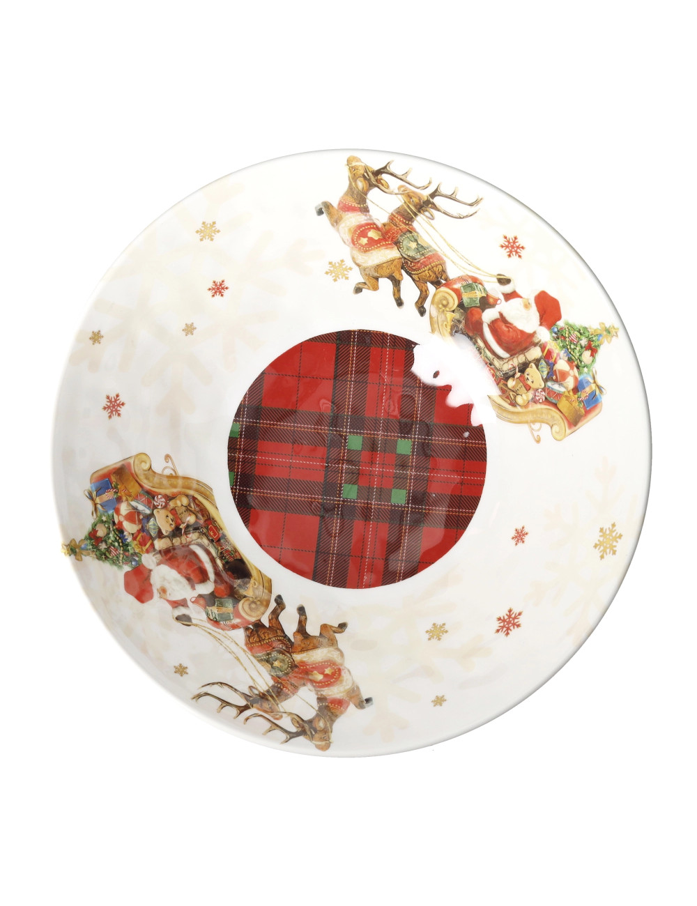 Ciuf-ciuf! Arriva un carico di auguri con la collezione Christmas by Brandani! Scegli tra i tanti accessori disponibili e decora la tua casa con eleganza, magia e tradizione. La sezione in melamina presenta ciotole, piattini, vassoi e antipastiere dai classici dolci Decori del periodo. Un due in uno di design e praticitątipico di tale materiale: versatile, robusto, infrangibile e sicuro da maneggiare anche in presenza di bambini. La superficie lucida permette una resa dei colori quanto mai scintillante, garantendo un'atmosfera radiosa e spensierata. Informazioni tecniche: Dimensioni CM: D 27,5X9 H Materiale Melamina Utilizzabile in Lavastoviglie