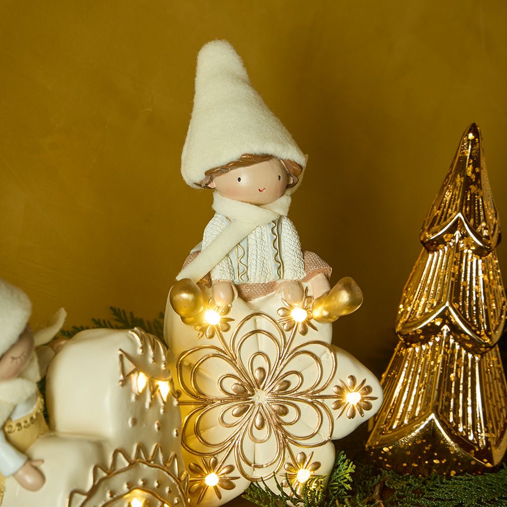 Bambolina Stella con led h 22,5 cm Poliresina Beige Linea Pretty