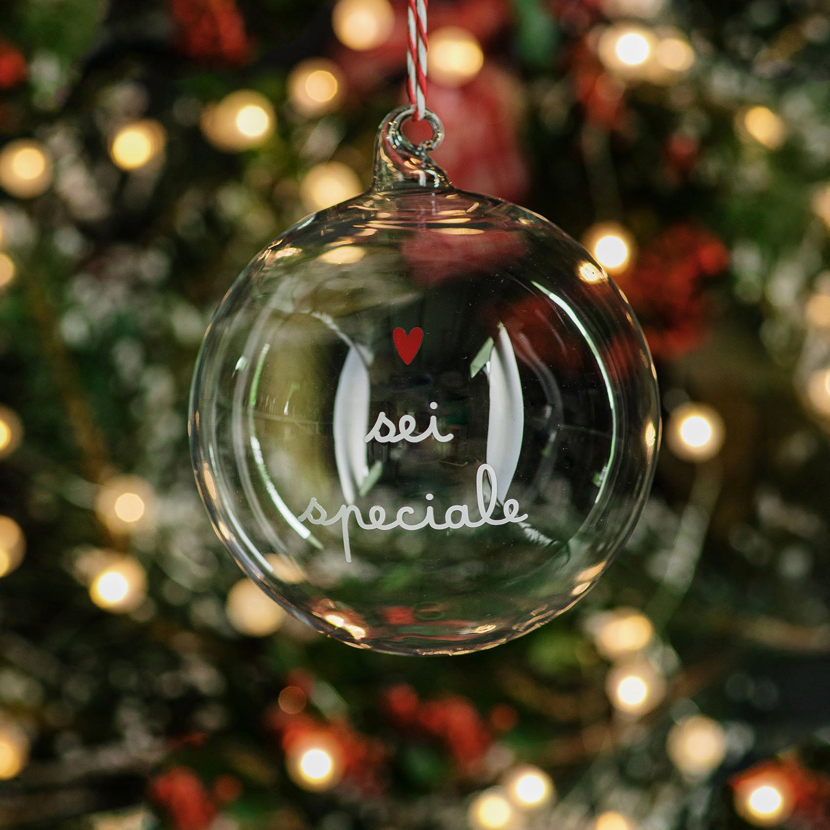 Pallina in vetro borosilicato Sei speciale - 12 cm Rallegra i tuoi ambienti con queste bellissime palline in vetro Simple Day! Il loro design è impreziosito da frasi che faranno risplendere la tua casa! Un complemento perfetto per una decorazione dal tocco magico! Realizzata in vetro borosilicato, un materiale che ha caratteristiche uniche, infatti nonostante sia leggerissimo è molto resistente, super trasparente, molto brillante e facile da pulire Decoro Sei speciale in bianco Cordino incluso (attenzione: il colore bianco o rosso del cordino va in base al colore del decoro della pallina) Inscatolata singolarmente Dimensione: 12 cm Piccole imperfezioni nel vetro posso essere dovute alla lavorazione artigianale Lavare delicatamente con prodotti non aggressivi o abrasivi Disegnato in Italia