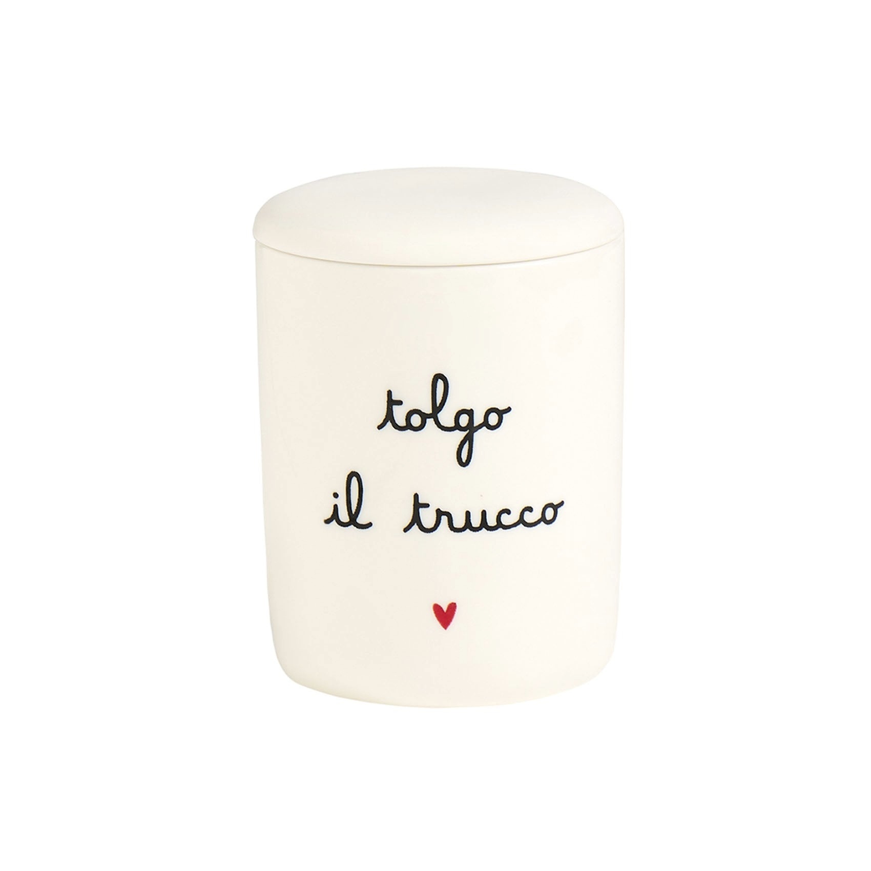 Prodotto che unisce praticitą ed eleganza con il suo raffinato gres con decoro. Perfetto per tenere a portata di mano i tuoi prodotti per il bagno, aggiunge un tocco di stile senza rinunciare alla funzionalitą. Il suo design giocoso rende ogni momento di cura personale pił piacevole e sofisticato. Dimensioni: d8 x h10,8 cm Decoro: Tolgo il trucco Colore: Bianco Materiale: Gres