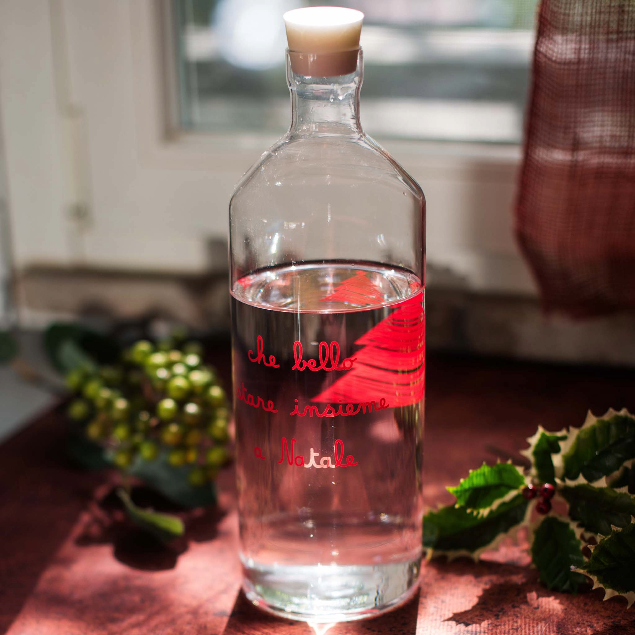 Bottiglia in vetro con decoro Che bello stare insieme a Natale Elemento dal design minimalista e coerente nelle forme, la bottiglia unisce il tuo decoro preferito ad una materia prima d'eccellenza: il vetro borosilicato, spesso e resistente. Ti renderai conto prendendo in mano questa bottiglia che è un piacere trasportarla ed esibirla in tavola per dare un tocco di freschezza e contemporaneità all'apparecchiatura. Di grande capacità (1.4 lt), non ti lascerà mai senza l'acqua (o la tua bevanda preferita). Bottiglia realizzata in vetro borosilicato, un materiale che ha caratteristiche uniche, infatti nonostante sia leggerissimo è molto resistente, super trasparente, molto brillante e facile da pulire Decoro Che bello stare insieme a Natale in colore rosso Puoi lavare tranquillamente la bottiglia in lavastoviglie: raccomandiamo di scegliere il programma da max 50° e di non utilizzare detergenti aggressivi o abrasivi Capienza: 1,4 litri Dimensioni: 9,5 cm x 29 cm Disegnato in Italia