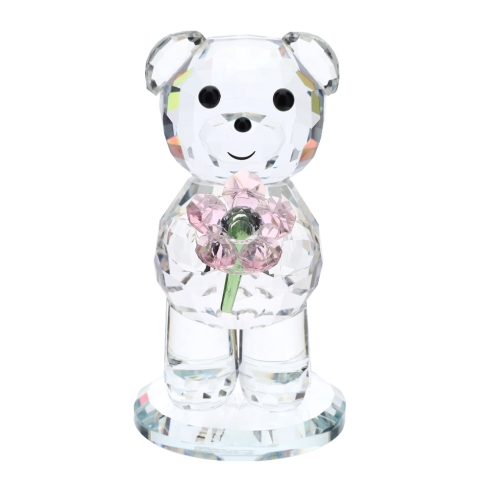 ORSETTO CRISTALLO 14CM C/FIORE ROSA