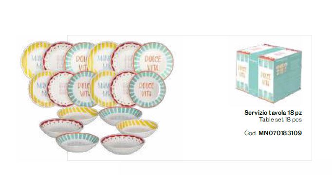 Servizio tavola 18 pz. porcellana Moon Viva l'Italia