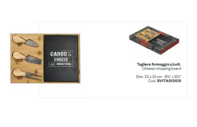 Tagliere formaggio con tre coltelli misura tagliere cm. 31 x 22