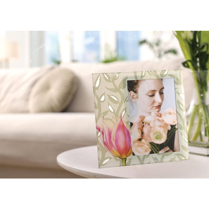 Portafoto in vetro decoro tulipano 18X18CM Collezione TRASPARENZE