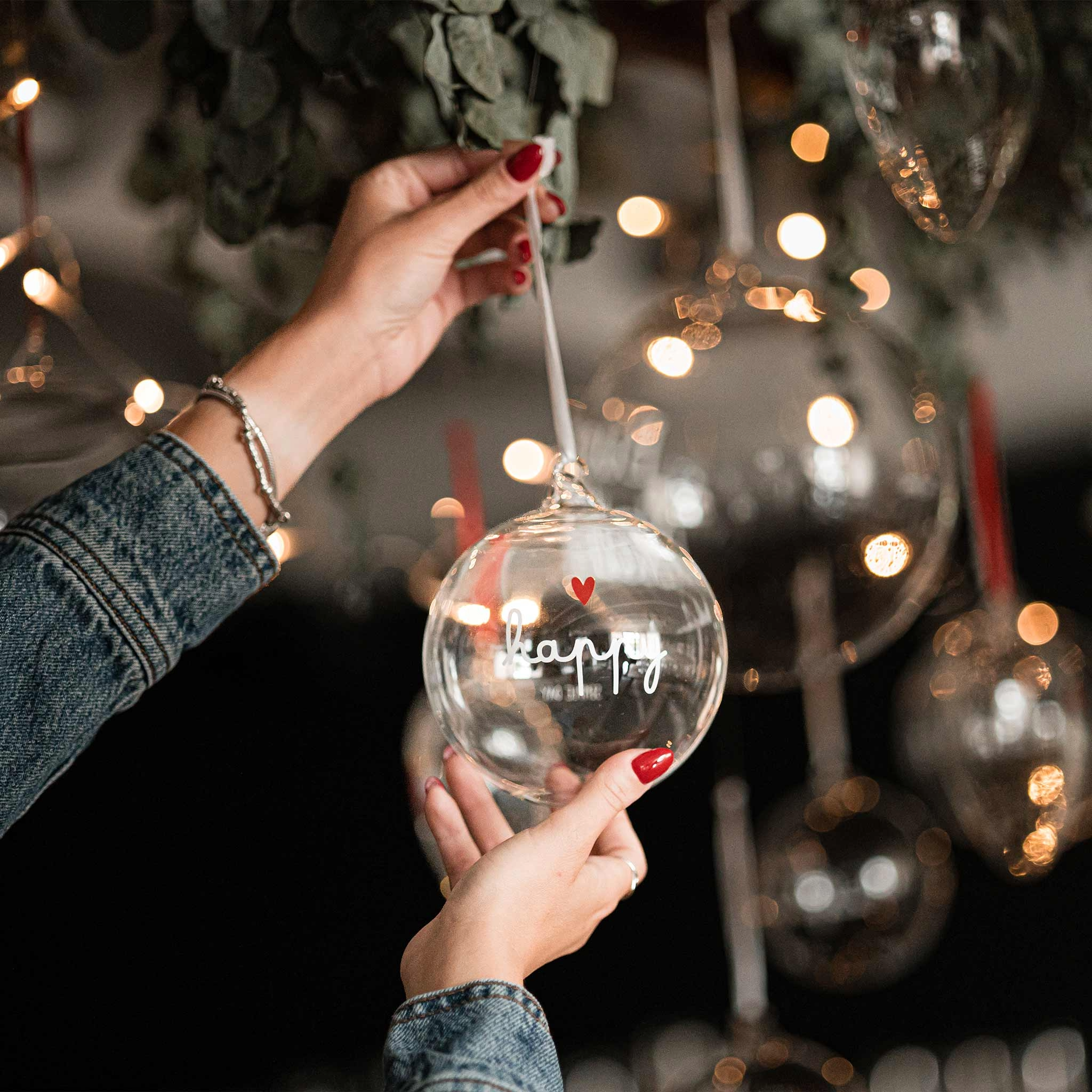 Pallina in vetro borosilicato Happy - 12 cm Rallegra i tuoi ambienti con queste bellissime palline in vetro Simple Day! Il loro design è impreziosito da frasi che faranno risplendere la tua casa! Un complemento perfetto per una decorazione dal tocco magico! Realizzata in vetro borosilicato, un materiale che ha caratteristiche uniche, infatti nonostante sia leggerissimo è molto resistente, super trasparente, molto brillante e facile da pulire Decoro Happy in bianco Cordino incluso (attenzione: il colore bianco o rosso del cordino va in base al colore del decoro della pallina) Inscatolata singolarmente Dimensione: 12 cm Piccole imperfezioni nel vetro posso essere dovute alla lavorazione artigianale Lavare delicatamente con prodotti non aggressivi o abrasivi Disegnato in Italia
